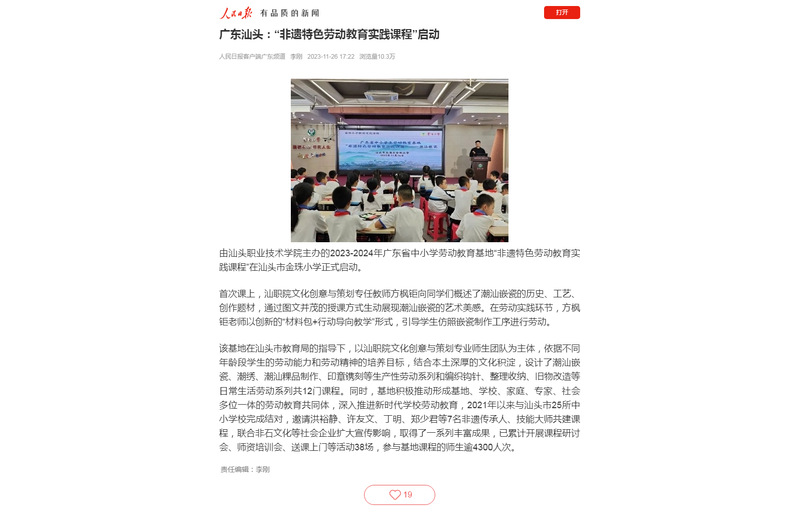 广东汕头:“非遗特色劳动教育实践课程”启动