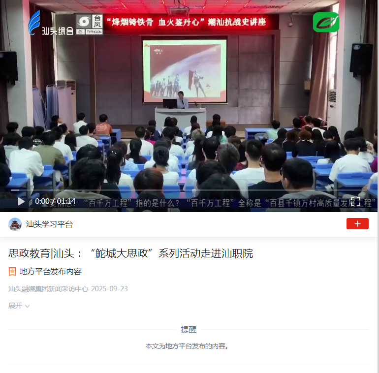 思政教育|汕头:“鮀城大思政”系列活动走进汕职院