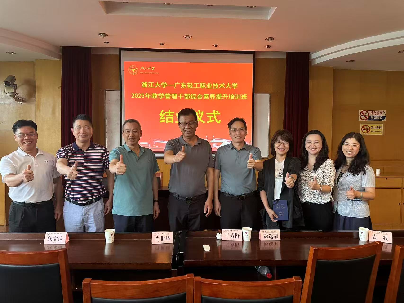 广轻大利用自身办学优势和社会影响力,及时与汕职院共享党建、教学及科研成果转化等方面的培训资源。比如先后邀请汕职院参加了党的二十届三中全会精神干部读书班及干部培训(500人次),教学能力比赛系列培训(300人次),学生创新创业专题培训(50人次),科技成果转化培训(30人次),生产性实训基地内涵建设培训(60人次)等。今年六月,汕职院8名教师全程参加了广轻大在浙江大学举办的教学管理骨干教师培训班。一年来,广轻大从办学理念、办学思路和具体业务上输出全方位的培训资源,为整体提升汕职院的师资队伍水平发挥了积极的作用。