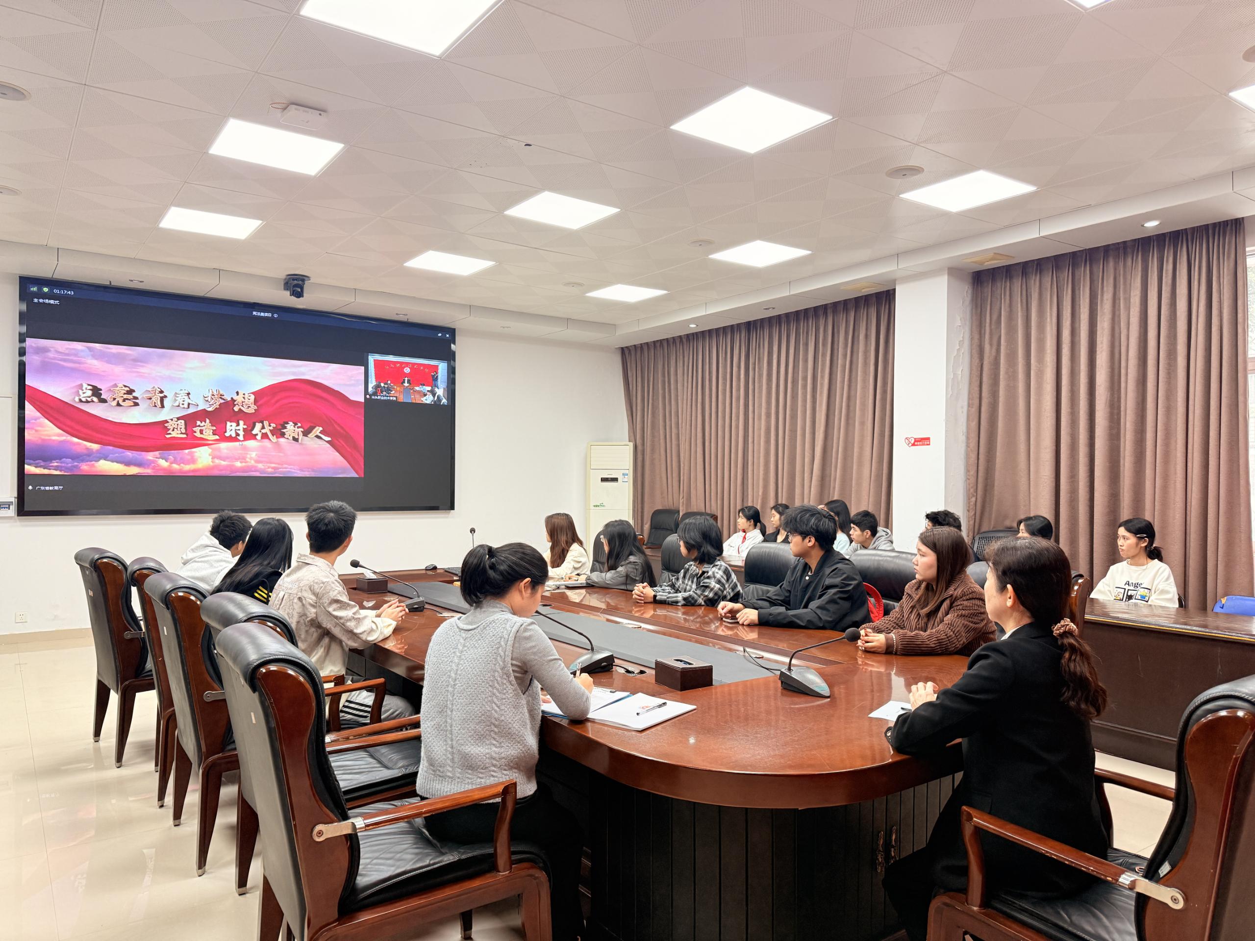 学校在本部校区图书信息大楼一号会议室与金园校区会议室同步设立分会场,应用外语学院、建设生态学院近百名师生代表现场参与。随着北京主会场信号接入,师生们共同见证升旗仪式,齐声诵读宪法条文,合唱《宪法伴我们成长》,认真收看第十届全国学生“学宪法讲宪法”比赛获奖名单宣布、优秀作品展演及教育部领导讲话等环节,在庄重仪式中感受宪法权威。除集中收看外,各二级学院也结合实际,积极组织师生通过网络平台同步收看直播,并跟随直播开展宪法跟读,推动宪法学习全覆盖。