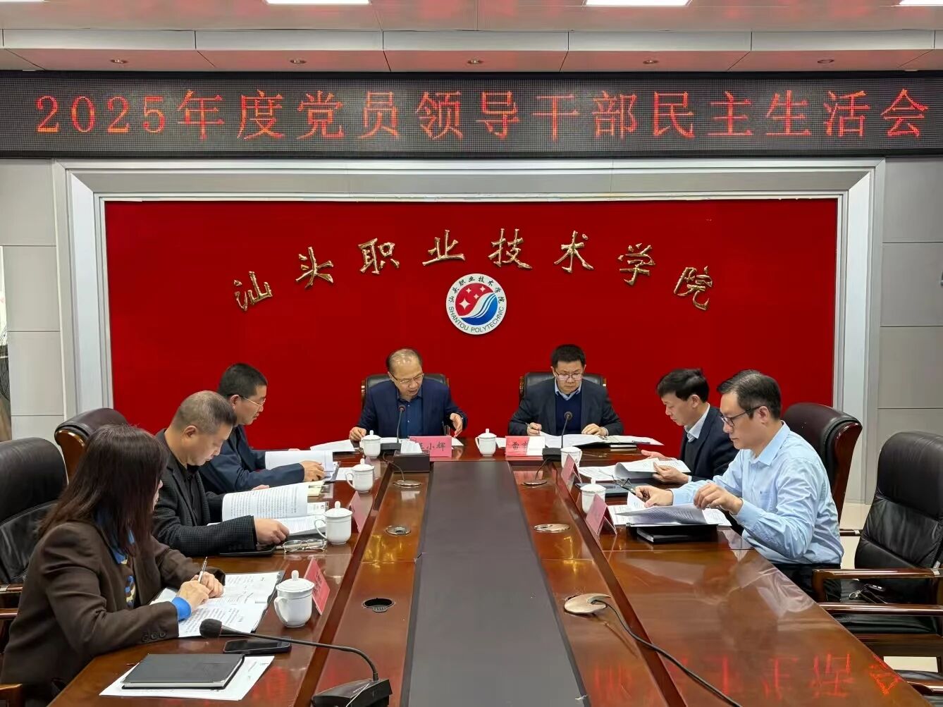 2月6日上午,汕头职业技术学院召开2025年度党员领导干部民主生活会。学校党委书记王小辉主持会议并讲话,学校党委领导班子成员参加会议。党委办公室、纪检室主要负责同志列席会议。