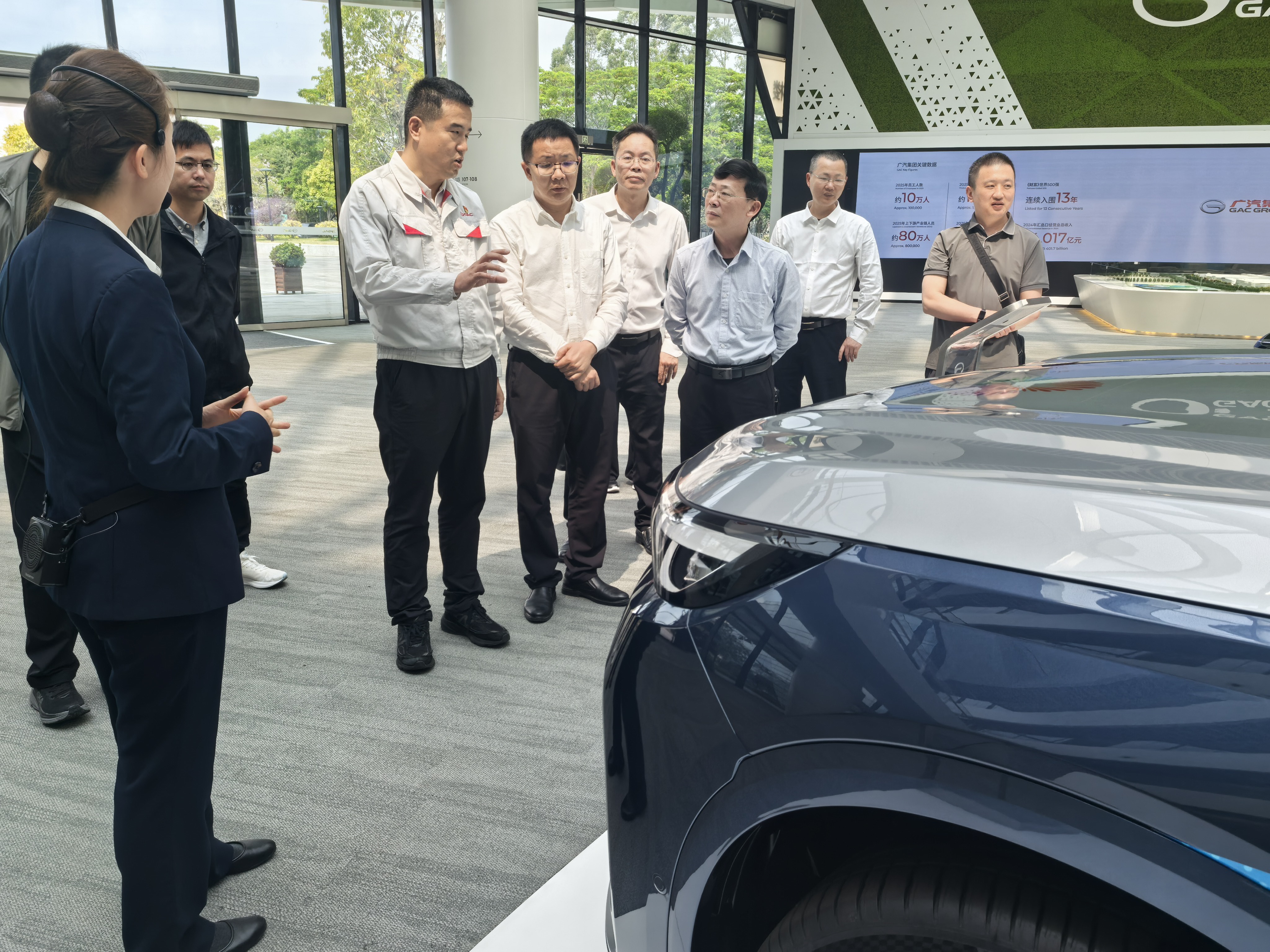 在广州汽车集团股份有限公司人力资源部负责人王友标等的陪同下,调研组参观了广汽埃安新能源汽车厂区、广汽T2大堂和科技展等。雷育胜校长在参观过程中不时驻足询问,他介绍了学校在专业建设与人才培养方面的特色优势,并指出,先进制造学院目前开设的新能源汽车技术、汽车检测与维修技术等专业,与企业岗位需求高度契合,期待与广汽集团深化学生岗位实习合作等。王友标对雷校长的建议表示高度认可,并分享了广汽集团在新能源汽车领域的最新研发成果与技术进展。