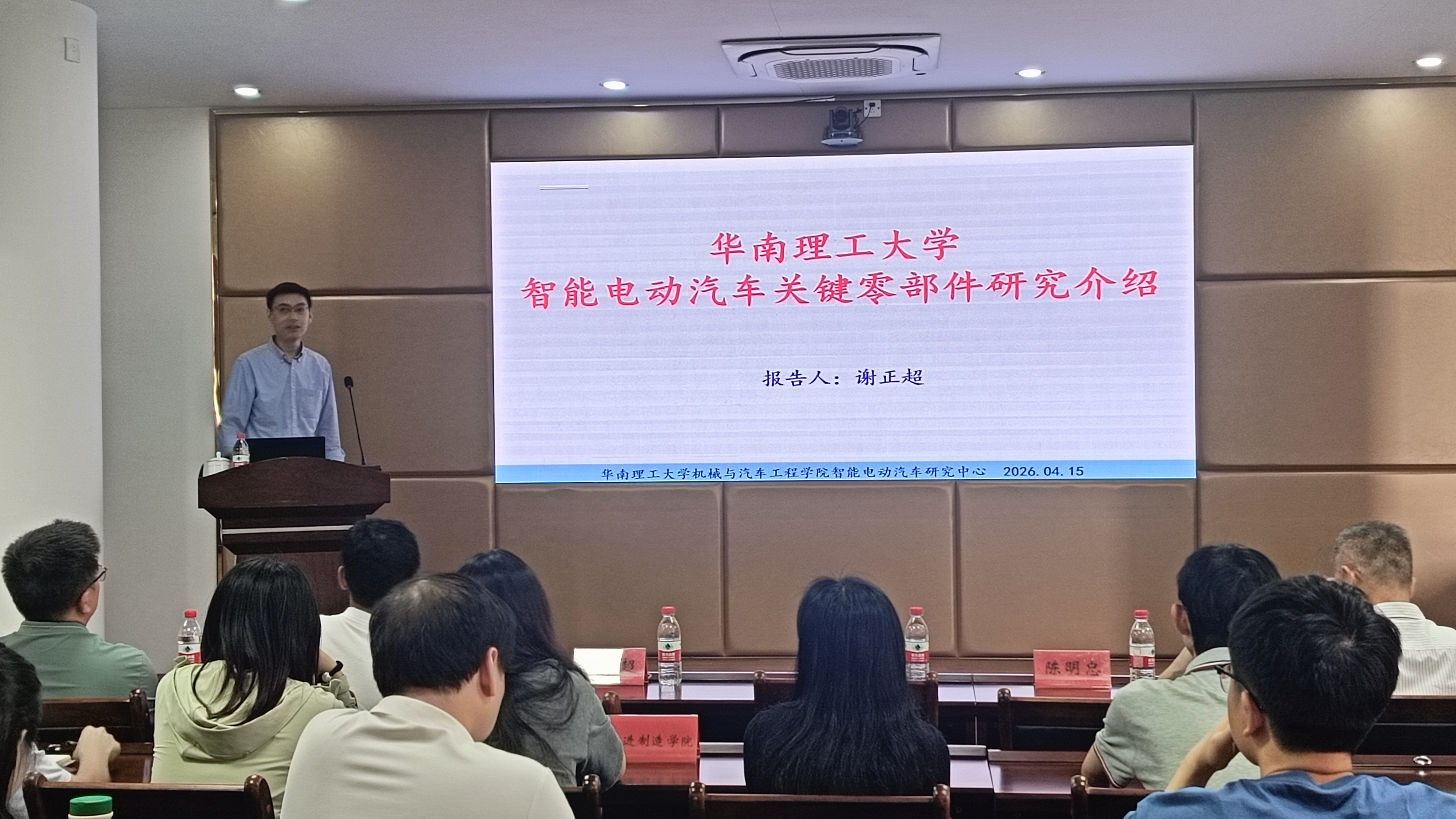 4月15日,学校特邀请华南理工大学谢正超教授莅校做“智能电动汽车关键零部件技术”专题学术讲座,学校副校长林育青出席讲座,并为谢正超教授颁发聘书。讲座由学校科研设备处处长魏协奔主持。