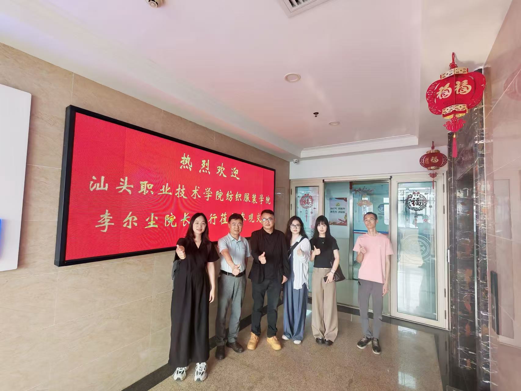 在汕头检验检测学会交流座谈时,调研团队一行受到学会秘书长黄晓丹等的热情接待。黄晓丹介绍了学会的发展概况、业务范围及在检验检测领域的工作成果。其间,双方还就纺织服装学院纺织材料与应用、纺织品检验与贸易等专业建设,以及人才培养对接、师资与技术资源共享、学生实习就业等合作事宜展开深入洽谈。