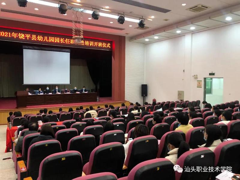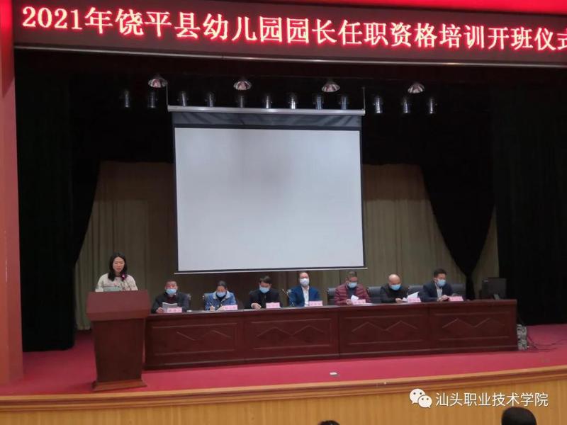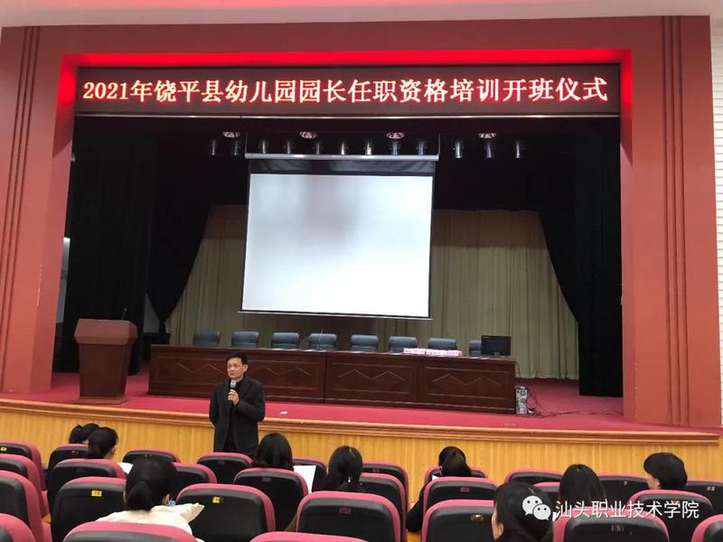 为全面落实校长、园长持证上岗制度,切实提高校长、园长规范管理及专业履职水平,由汕头职业技术学院主办、澄海职业技术教育中心承办的2021年区(县)幼儿园园长任职资格培训开班了。 1月19日开班仪式上,饶平县教育局领导陈裕平局长等出席并为学员作开班动员讲话,汕头职业技术学院成人教育部主任林旭群、授课教师和学员代表也做了发言。澄海职业技术教育中心校长余希武、副校长张少平布置了有关培训教学工作。
