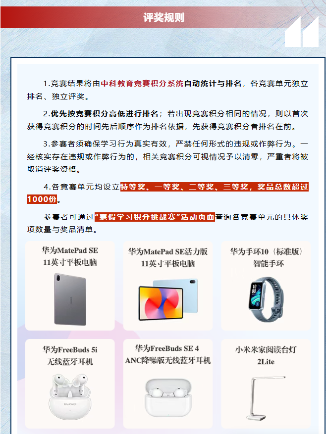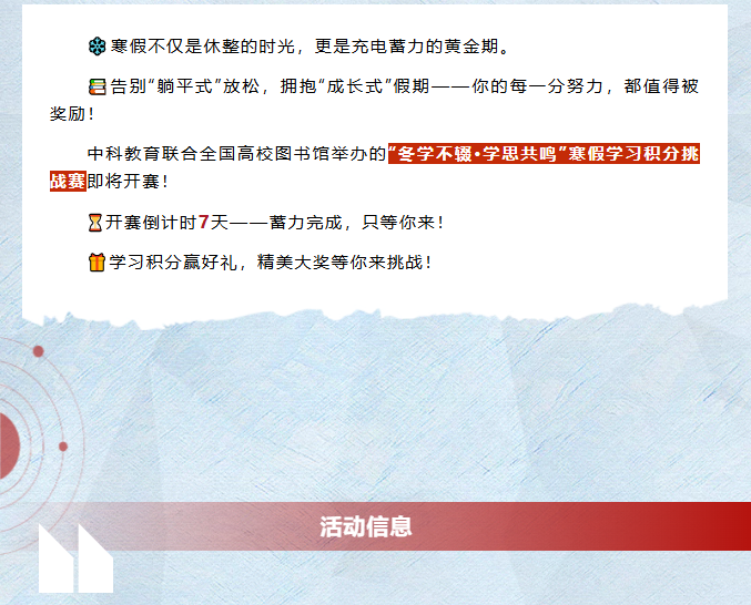 【中科VIPExam考试库】这个寒假,学习有奖!中科教育寒假学习积分挑战赛等你来战!