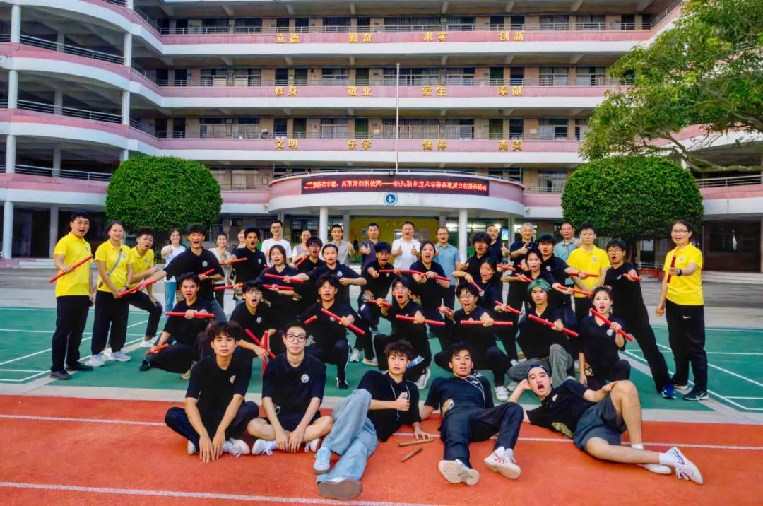 2025年,英歌舞社团的展演步伐更为深远。4月23日,学校英歌舞传承发展中心选派郑梓瀚、李昭敏、林若炀三位同学,携自主研发的潮汕英歌舞全阵容脸谱与经典代表人物服饰(已获版权),远赴西安参加“百万英才汇南粤”活动。他们精心布置非遗文化体验专区,开展互动教学,让省外观众亲身体验“中华战舞”的魅力,助力汕头城市形象推广。