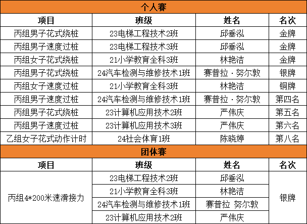本次赛事中,我校轮滑队由艺术设计学院刘少斌老师带队,6 名运动员分别征战丙组与乙组(高职专业组)。面对全省顶尖选手的激烈角逐,队员们凭借昂扬斗志与扎实技术过关斩将,在速度与技巧的比拼中展现卓越实力,以汗水与坚持践行 “敢拼会赢” 的体育精神,最终在丙组赛场脱颖而出,斩获团体桂冠并包揽多枚奖牌。