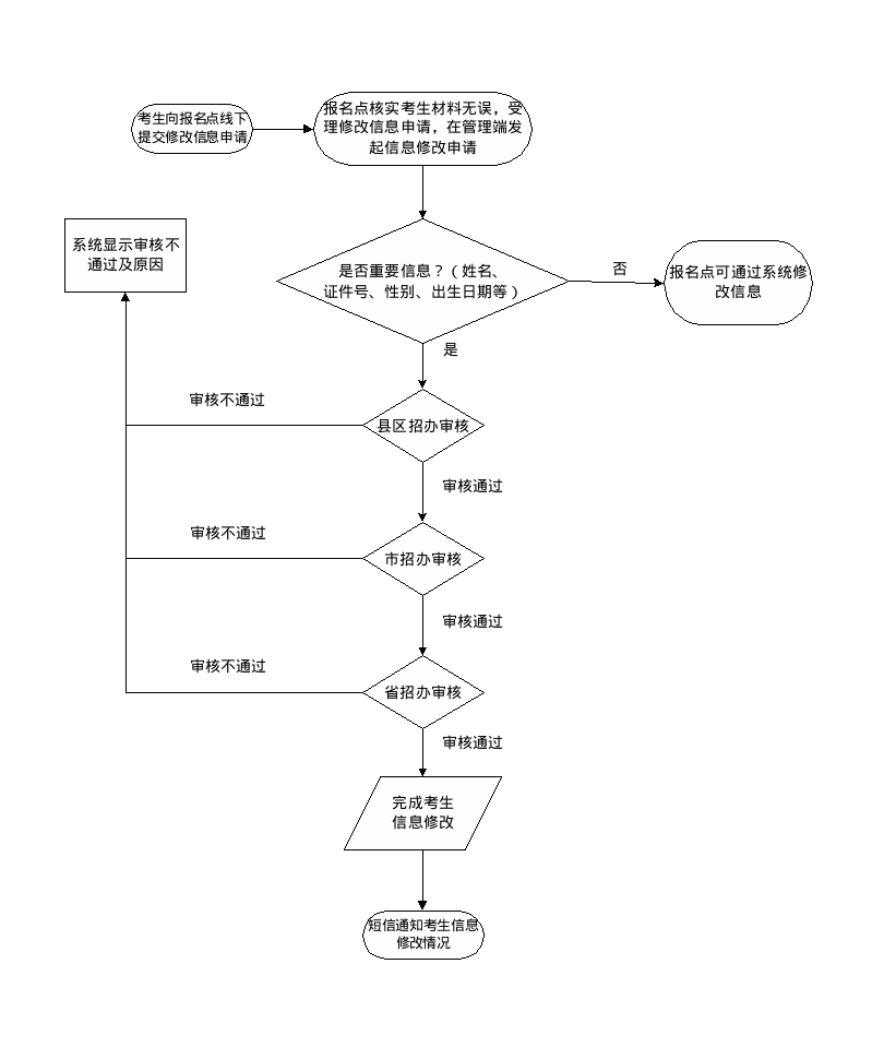 考生信息是考生考试、填报志愿、投档录取、入学报到、电子注册、学籍管理、学历证书办理的重要依据。考生信息错漏可能导致考生无法正常考试、无法填报志愿、无法在教育部备案,毕业时无法获得毕业证书等问题。各级招生考试机构要高度重视考生信息数据的采集和建档工作,建立健全考生信息核准检验机制。各报名点、各中学要认真指导考生完成报考信息的填写、校对工作,指定专人负责考生信息的核准工作,确保考生信息真实准确。一是要坚持考生基本身份特征信息使用电子设备程序统一采集。统一使用身份证阅读器采集考生基本身份数据,使用省普通高考报名系统、省教育考试院官微小程序采集考生相片和人脸特征信息数据。二是要建立健全考生信息核验机制。对于考生填报的信息有电子数据的要充分利用电子数据核验,无电子数据的要求考生在签名确认前认真逐项检查报名表内容,采用交叉检查、工作人员复核等方式加强人工核验,重点加强对户籍地、应/往届、学籍、选择考科目、联系电话等关键易错信息的核验,确保电子信息数据准确。三是要及时处理报名过程中遗留问题。对报名过程中无法处理的生僻字等问题,报名结束后要按要求及时汇总上报省教育考试院统一备案。此外,考生报名后姓名、证件号、户籍、政治面貌等信息有变化,按照“广东省2026年普通高考考生信息修改审核流程”(附件1的附16)申请更正,信息更正办理时段为报名结束后至2026年4月30日以及2026年6月10日至6月12日(注:开考后不再受理高考报名所使用户籍被注销考生的修改信息申请),因考生未及时提交修改信息申请而造成的遗留问题由考生本人承担责任。